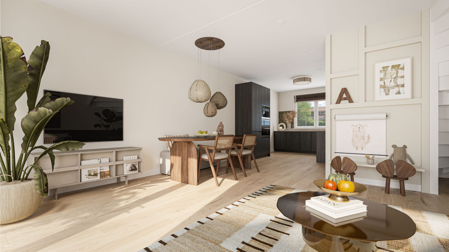 Je vindt dit woningtype op twee plekken terug. Kies je voor reuring en een diepe achtertuin met ochtendzon of ga je voor uitkijk op de groene bosrand? Wat je ook kiest, alle woningen hebben een grote leefruimte op de begane grond, die je gemakkelijk naar jouw voorkeur in kunt delen. De keuken ligt aan de voorzijde van de woning.
