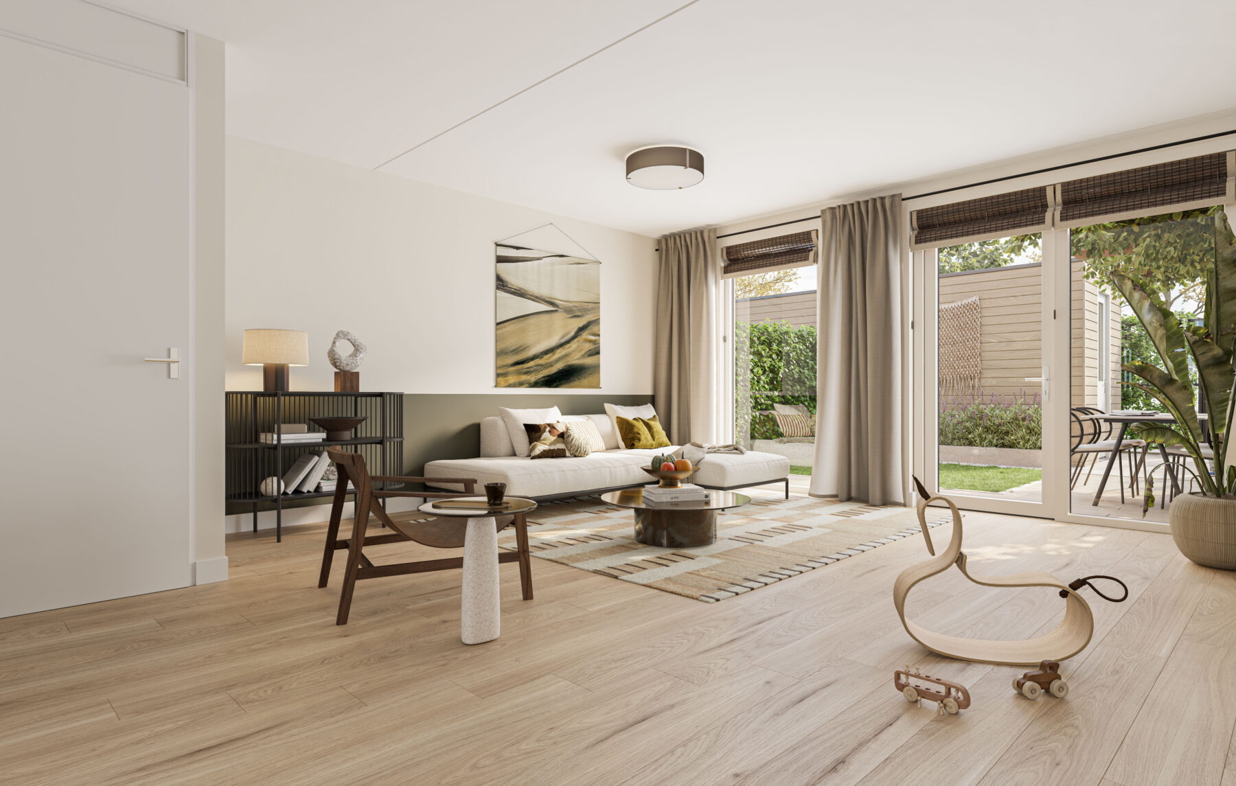 Met ramen over vrijwel de volledige achtergevel van de woning, geniet je bovendien volop van natuurlijk daglicht in huis.