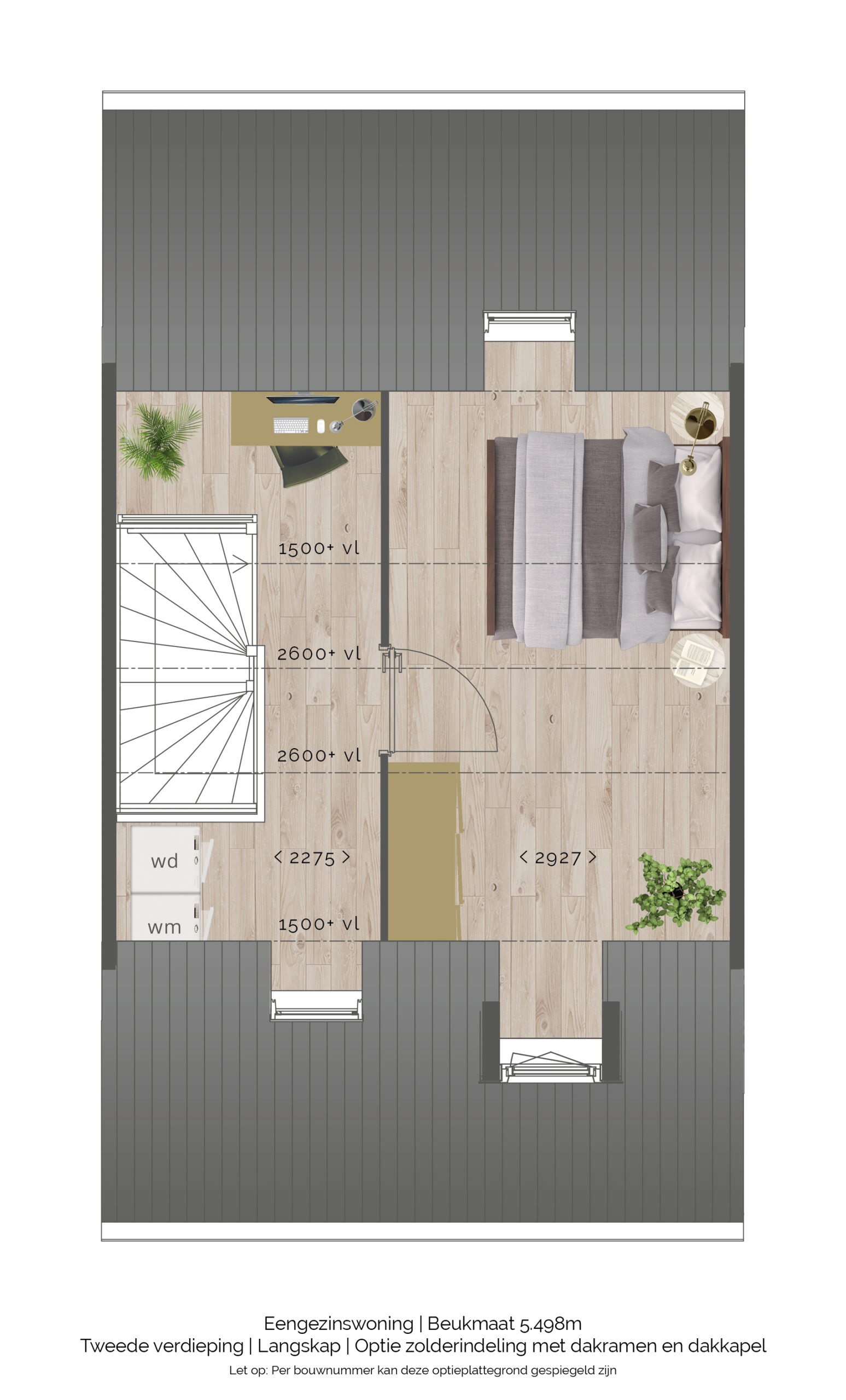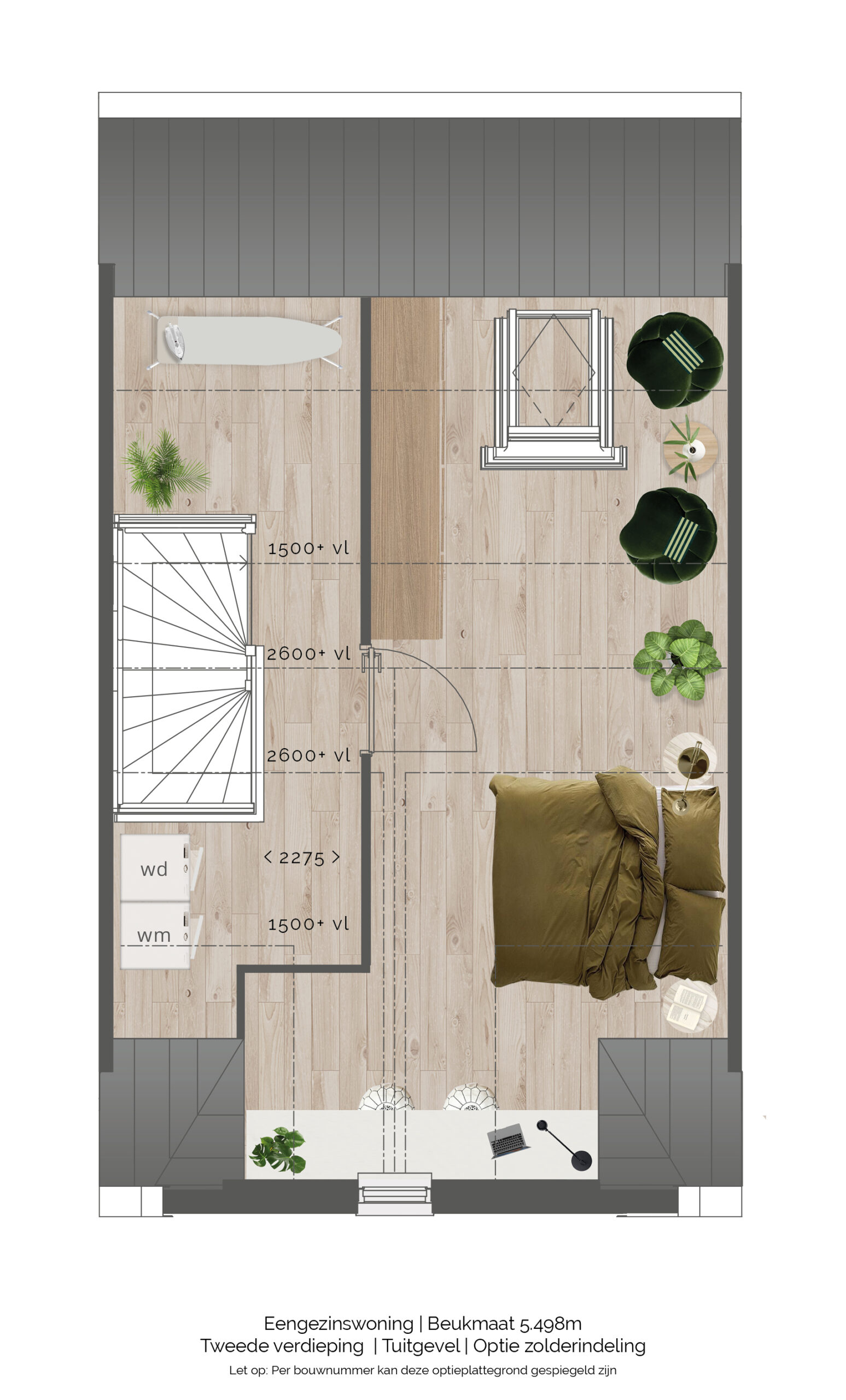 - Een ruime zolderverdieping, optioneel in te delen